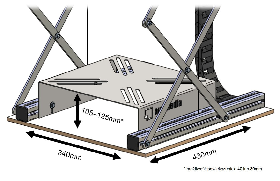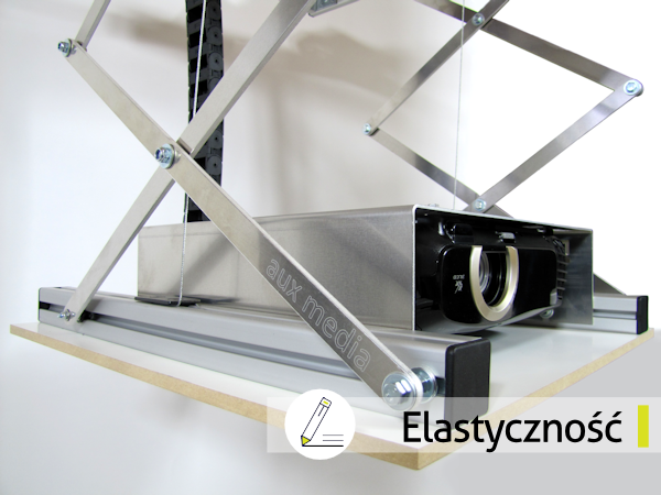 Winda do projektora o udźwigu do 15 kg, minimalnej wysokości zabudowy 12 cm i skoku do 45 cm. Kompatybilna z projektorami do 34 cm szerokości, sterowana radiowo i z możliwością montażu projektora dołem do góry.