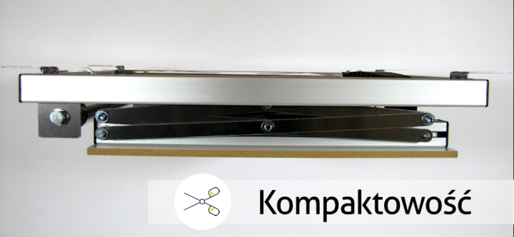 - Bardzo mała wysokość zabudowy, idealna do niskich sufitów